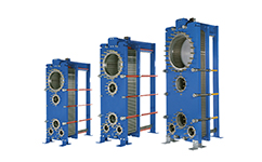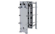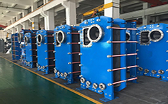 板式熱交換器是由框架、傳熱板片組及夾緊螺栓等主要部件組成??蚣馨ㄒ粋€(gè)固定壓緊板和一個(gè)活動(dòng)壓緊板,由上導(dǎo)桿與下導(dǎo)桿支承,在另端有一支柱。兩種介質(zhì)經(jīng)固定(或活動(dòng))壓緊板上法蘭孔流入由波紋板片組成的各自通道,熱交換后介質(zhì)再由固定(或活動(dòng))壓緊板上的法蘭孔流出。同定壓緊板、活動(dòng)壓緊板、支柱及導(dǎo)桿均為低碳鋼??紤]到用戶的多種使用要求,框架設(shè)計(jì)有多種型式,主要有雙支撐框架式和常用的落地式等。