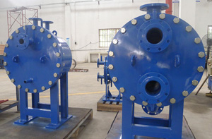 焊接板式換熱器,板式換熱器(可拆卸式板式換熱器),由于本身結(jié)構(gòu)的局限性,使用壓力不超過2.5MPa,使用溫度不超過250℃,此外還存在流體與密封墊片的相容性問題。因此,為了提高板式換熱器的使用溫度和壓力,擴(kuò)大 其使用范圍,國內(nèi)外陸續(xù)開發(fā)、制造并使用了多種焊接板式換熱器。這些焊接板式換熱器已經(jīng)越來越多地用于化工、石油、動力、冶金等領(lǐng)域的加熱、冷卻、冷凝、蒸發(fā)和熱回收等過程中。 焊接板式換熱器又分為:半焊接板式換熱器、全焊接板式換熱器、釬焊板式換熱器。